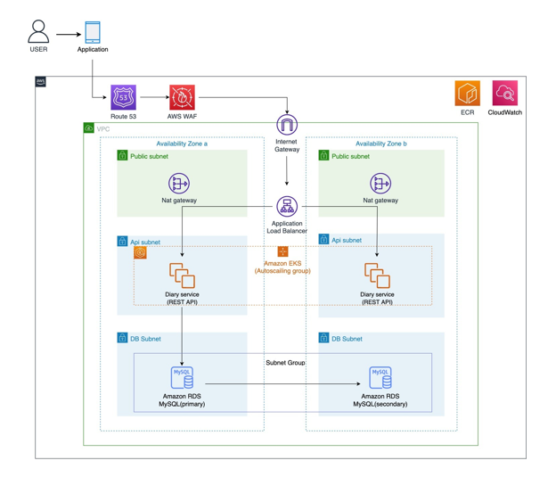- DB서버를 서로 다른 가용영역에 생성하여 이중화 환경을 구성하여 primary DB 서버에 장애가 발생하게 되면 secondary DB가 primary를 승계할 수 있도록 설계했다.