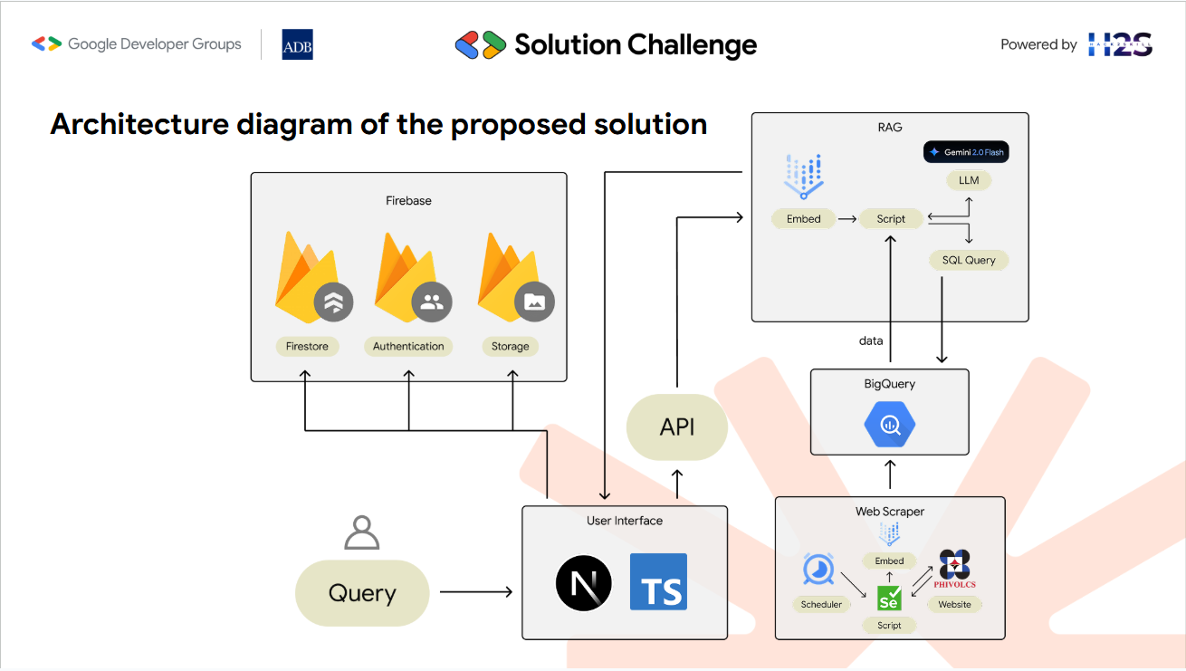 - RAG-Assisted Chatbot: A conversational assistant powered by Google Gemini that provides easy-to-understand answers to questions about volcanic activity, safety procedures, and preparedness in real time. Real-time data about the status of the Kanlaon Volcano is extracted through DOST-PHIVOLCS bulletin and database.