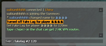 Title , such as Chinese,Japanese name , need use #userid. If type in non-english name , will show "Turned off fakelag for player 'xxx'".