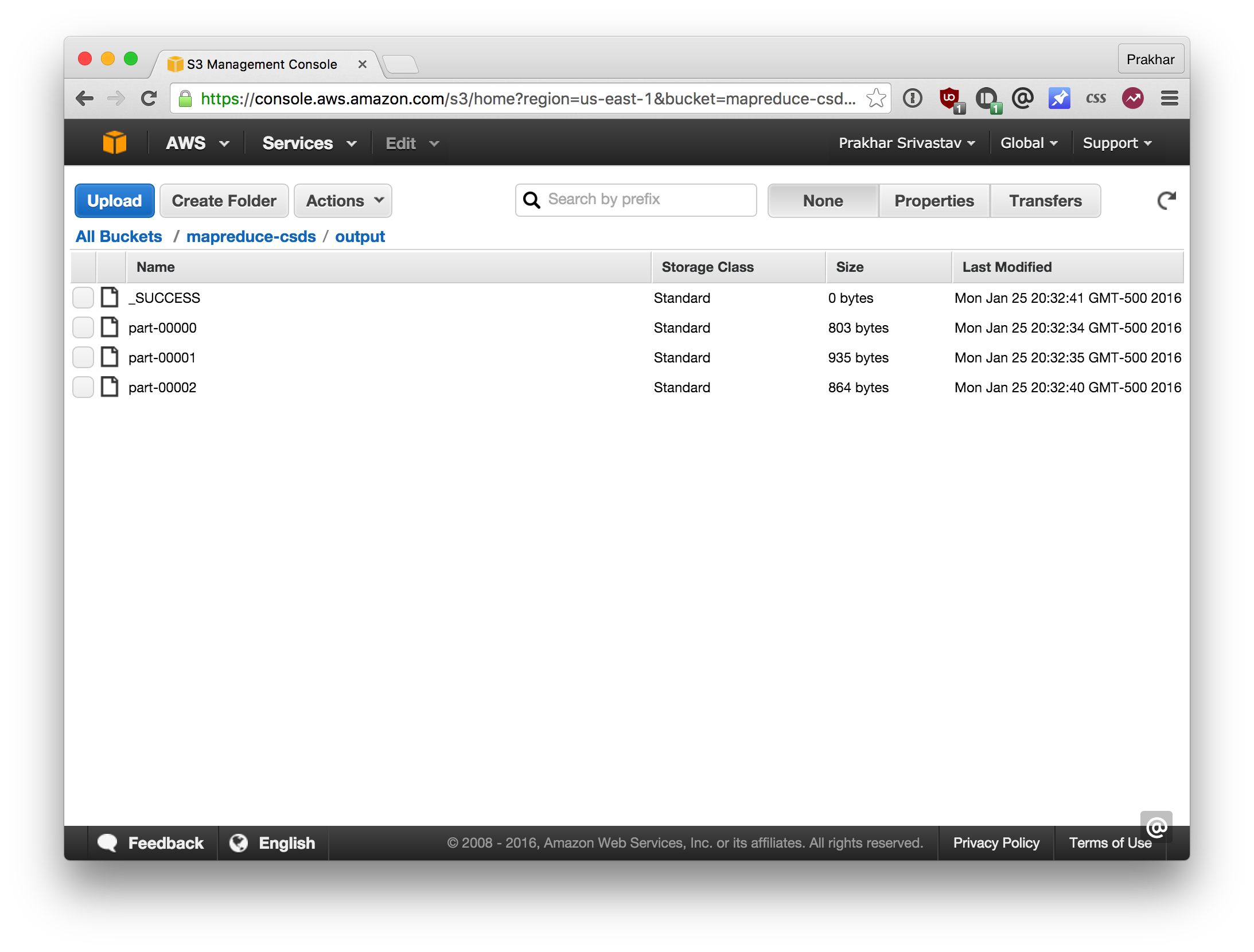 Our job has now run! To see the output, we can view the /user/csds/output/ directory.