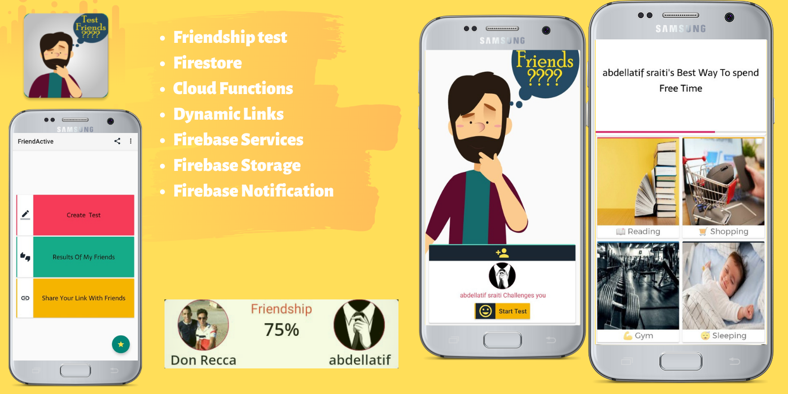 An app where you can know how much your friends really know about you, You take a test then the app give you a special invite link to share with your friends using Dynamic Links, and when a friend clicks on the link it takes him to the app if it’s installed or to the Store if it’s not and once the app is downloaded your friend is going to try and answer the questions about you, once he's finished the app is going to Notify you that you Can review your friend's result using Cloud Functions