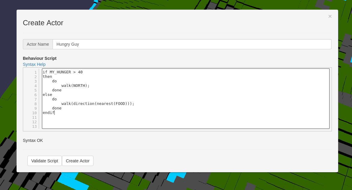 A prototype educational game designed to teach programming logic by introducing players to a simple scripting language that can be used to control the behaviour of agents in a 3D world. The game is open ended, with no concrete goals other than ensuring the survival of your avatar. The scripting language is intended to closely mirror a real programming language, while being simple to work with.