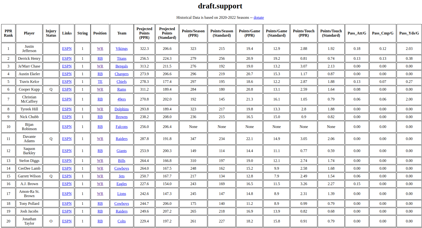 - This quick-reference for draft day shows player and team statistics from previous seasons