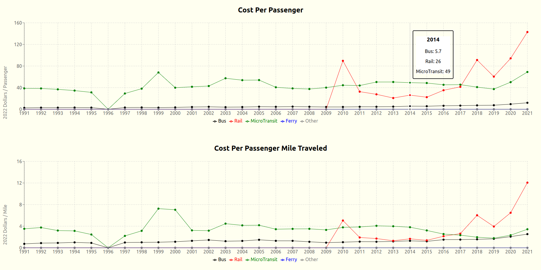 - See data on hours/miles of service provided, ridership, cost-efficiency