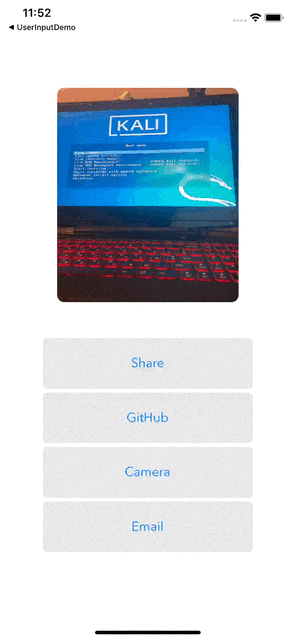 This repository contains my projects on which I've been practicing to work with System Controllers and User Input Implements MessageUI, SafariServices, UIImagePicker and MFMailCompose| First Screen Page | Share Screen | SafariPressed Screen |