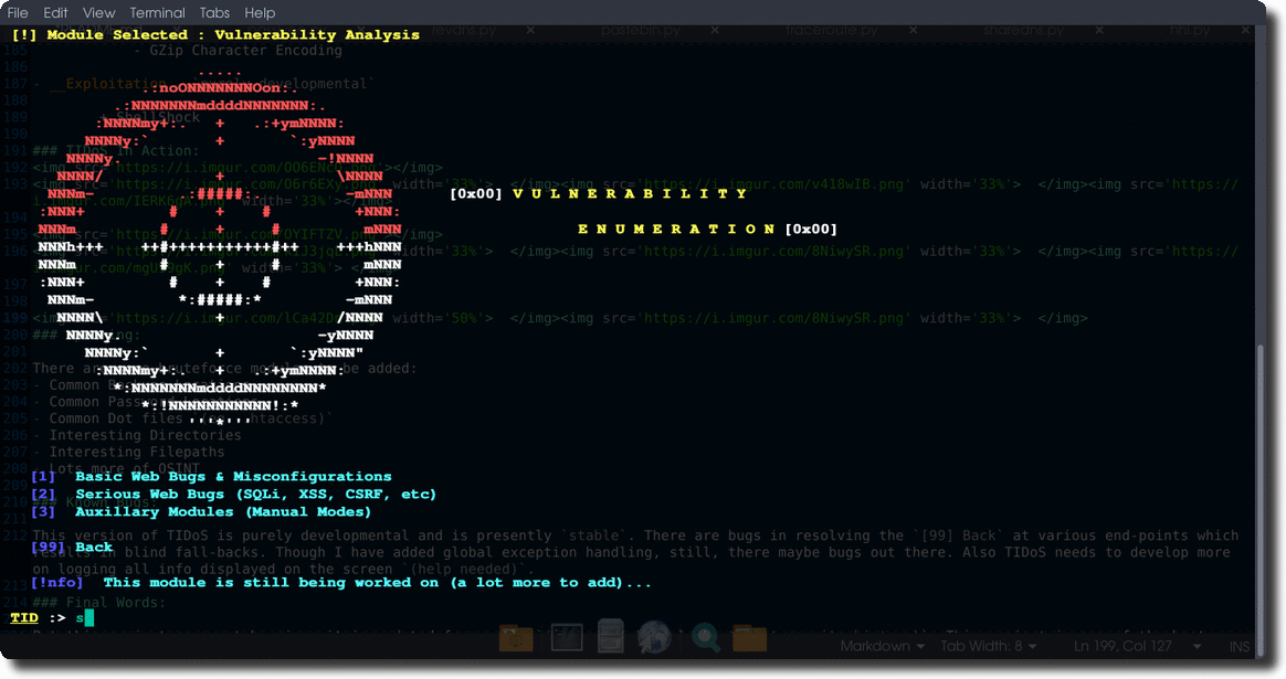 Lets see some screenshots of TIDoS in real world pentesting action: