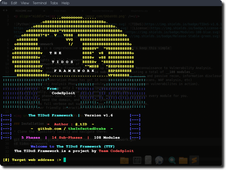 This project is presently under active development so you may want to put it on a watch, since it is updated frequently (you can take a look at past commits history). This project is one of the best frameworks I have ever built and I would really like your constructive criticism, suggestions and help in converting this project into the best web penetration testing framework ever built and trust me, it will be ;).