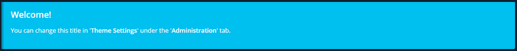 <div class="callout"><span>Welcome!</span><p>You can change this title in '<b>Theme Settings</b>' under the '<b>Administration</b>' tab.</p></div>