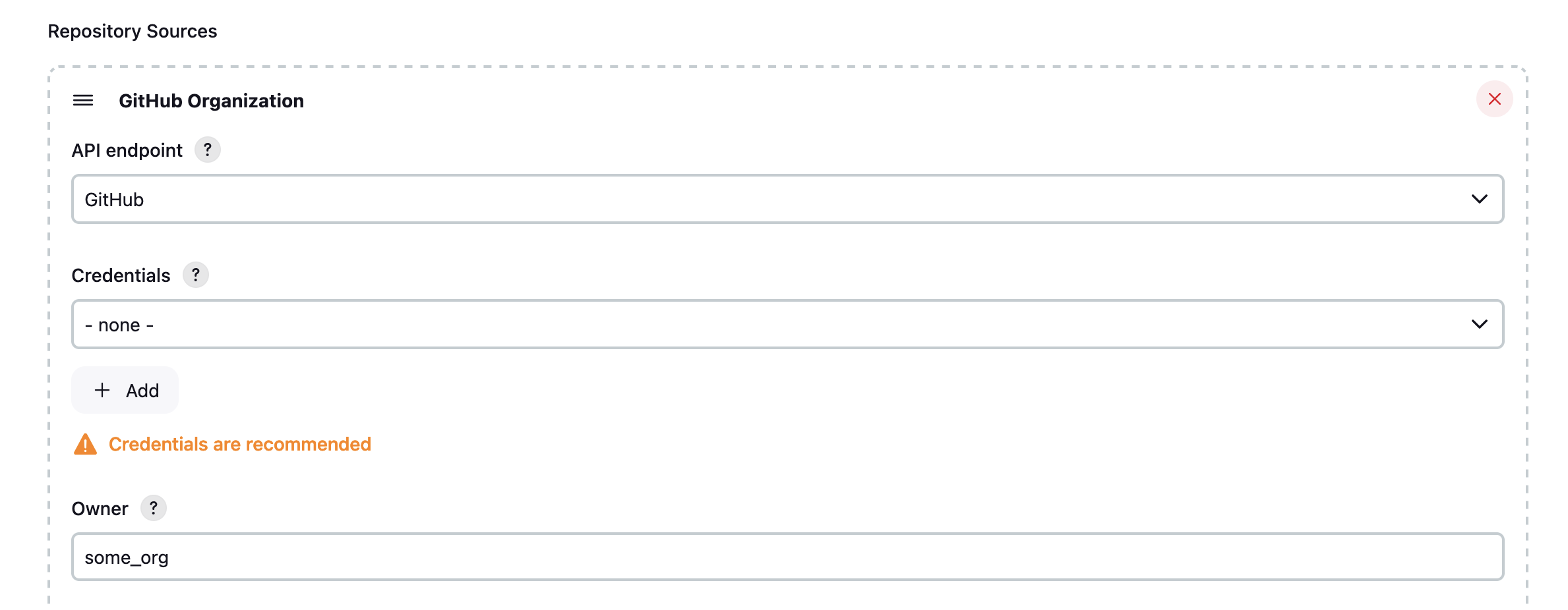 - Add another GitHub Organization Folder for the same organization, but leave credentials empty