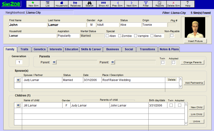 Open Sims2DB is an open-source version of Sims2DB Sims2DB (Sims2 DataBase), a powerful FileMaker Pro application that allowed players to track their Sims 2 characters, families, businesses, etc. This project exists to rescue this amazing tool from obsolescence and give it a new life through community-driven development.