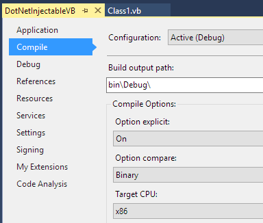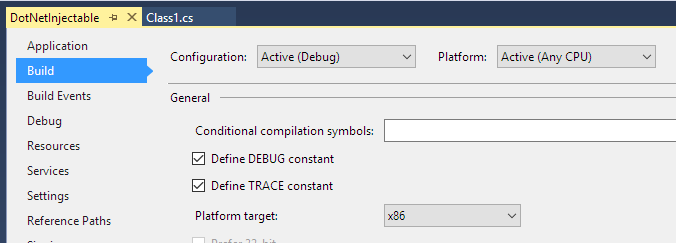 NOTE: When building your DLL, make sure to choose to build it as a x86 or x64 DLL. Obviously if the game or process you are intending it for is 32-bit, build it as x86. If you leave it as AnyCPU (default), the export will not work correctly! You can adjust this under Project > Properties > Build (C#) or Project > Properties > Compile (VB).
