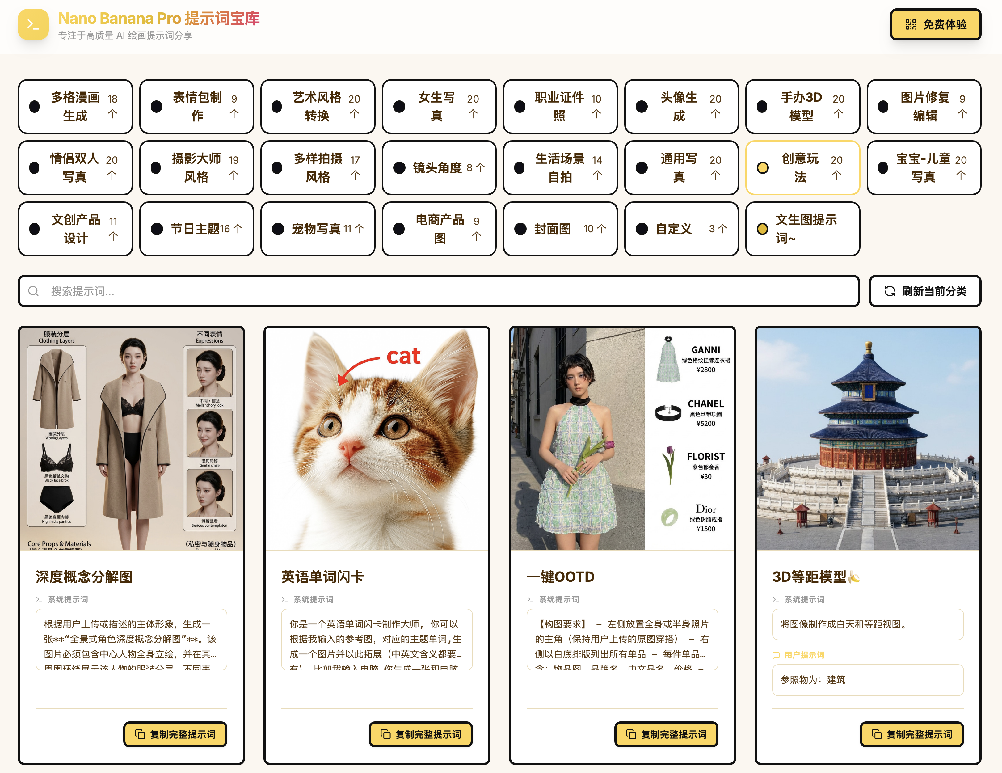于是我找了很多 Nano Banna 提示词库,上千个提示词可以直接复制使用!