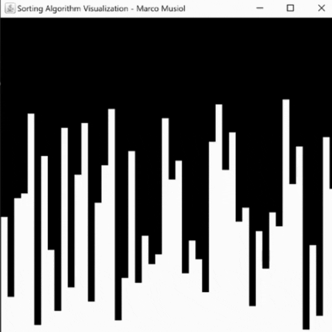 AlgorithmVisualizer algorithmVisualizer = new AlgorithmVisualizer(int size); // you can choose an array size between 25-50