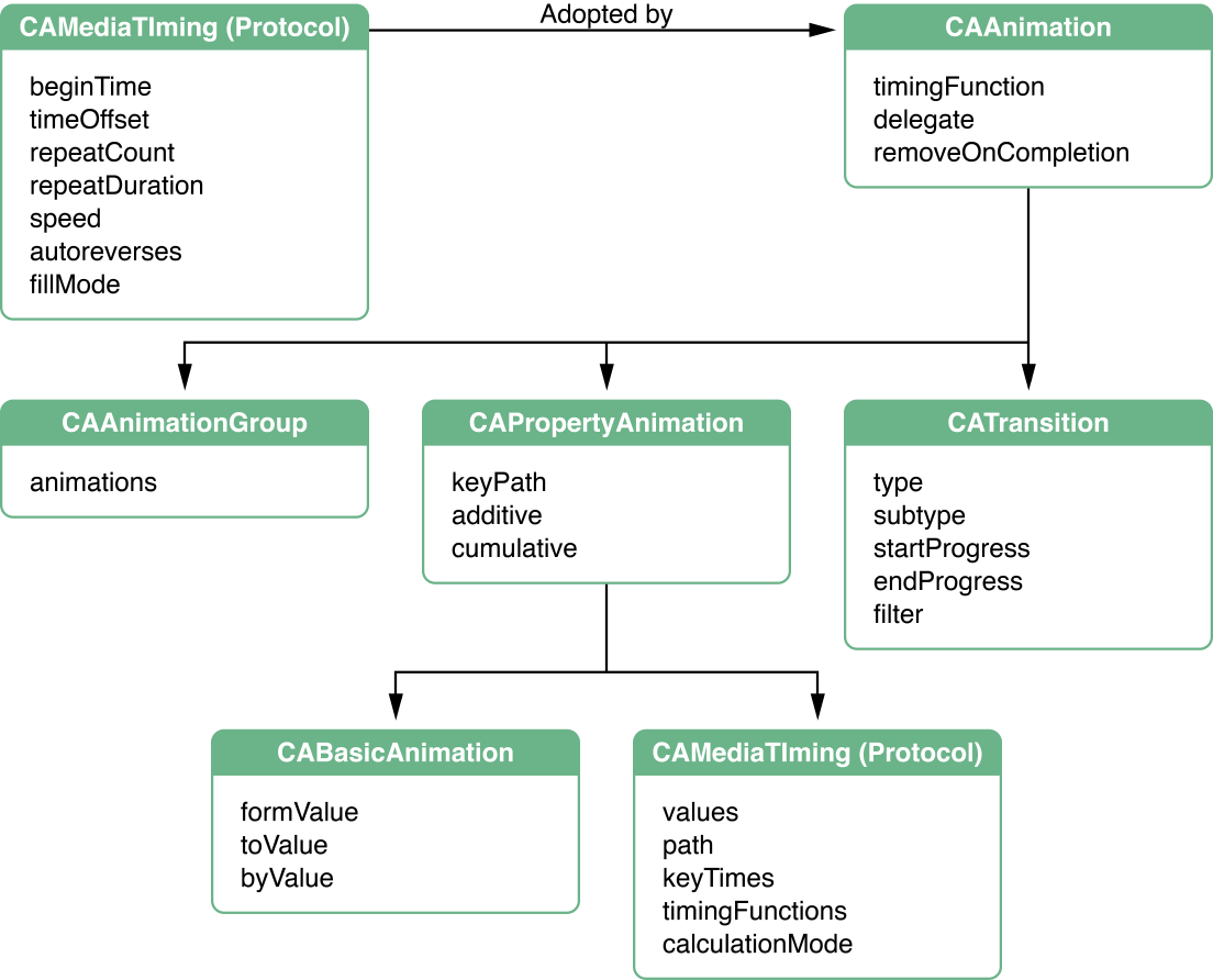 在 SDiffuseMenu 中动画用 CAPropertyAnimation 的子类 CABasicAnimation 和 CAKeyframeAnimation 来实现,关于这两个子类简述如下(下文会用到的知识点):